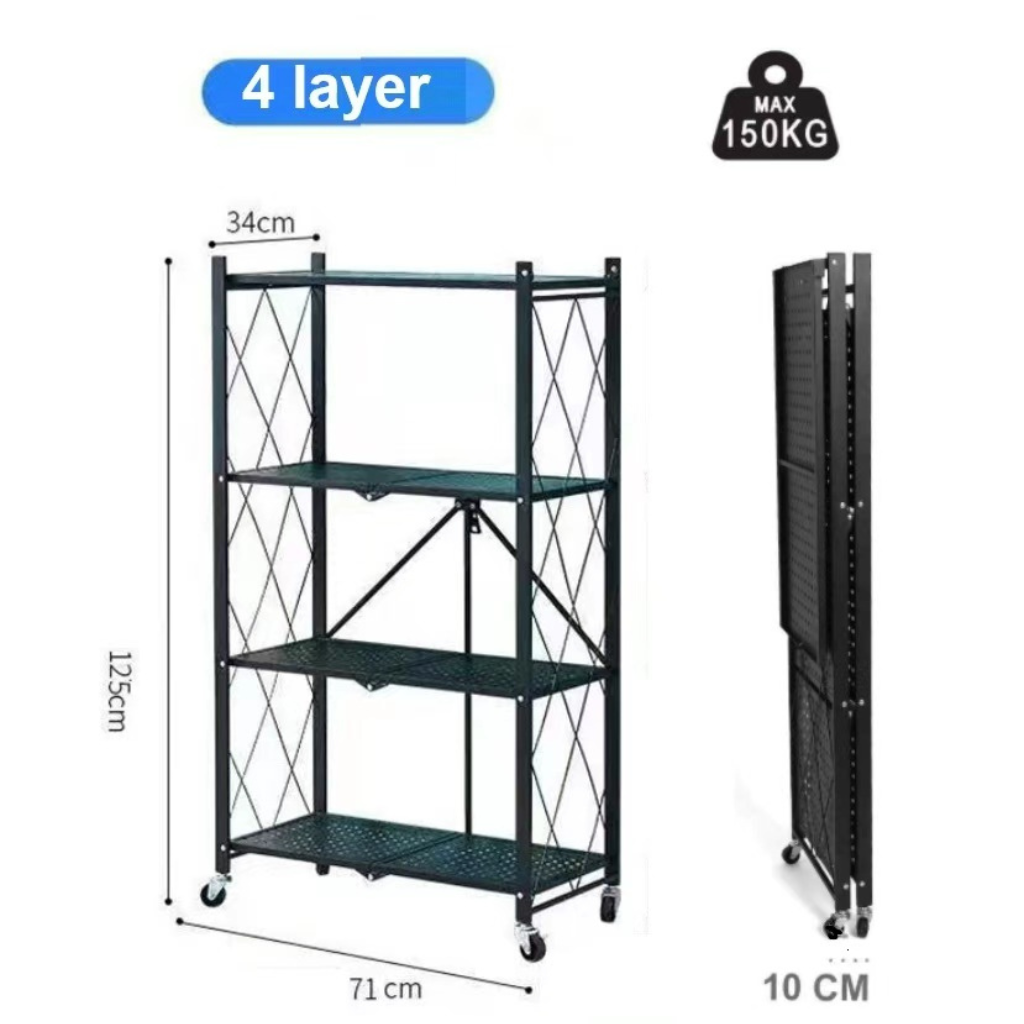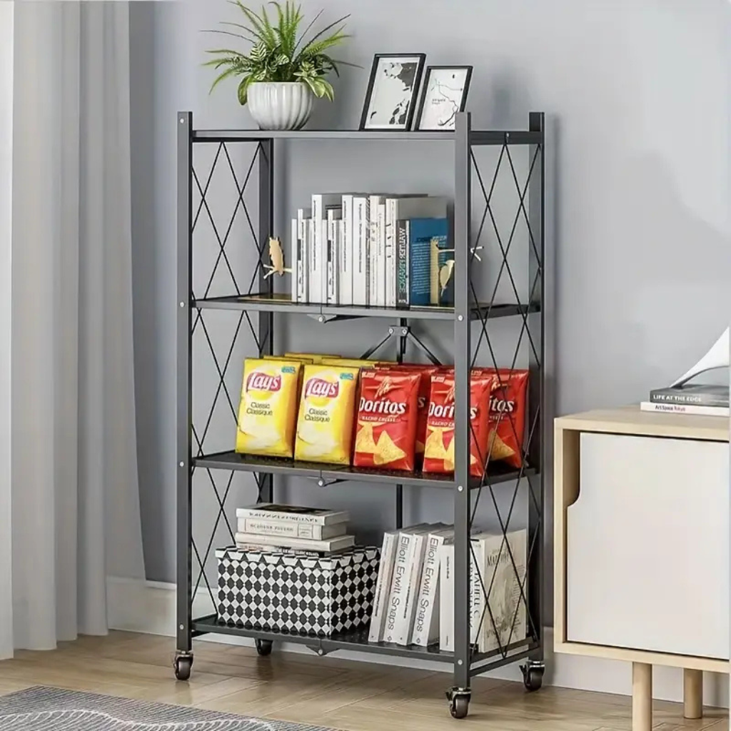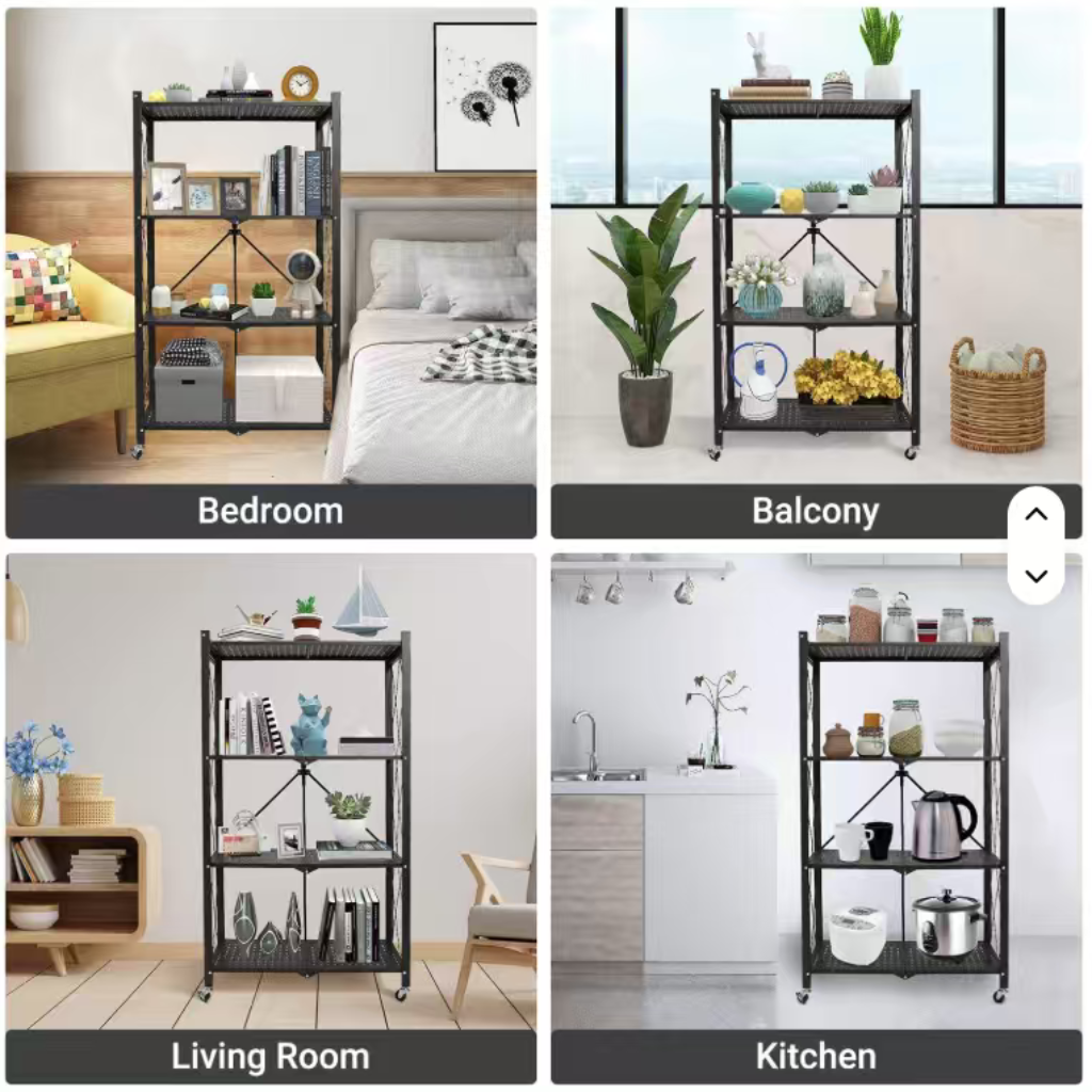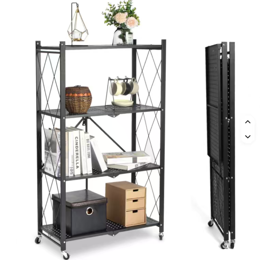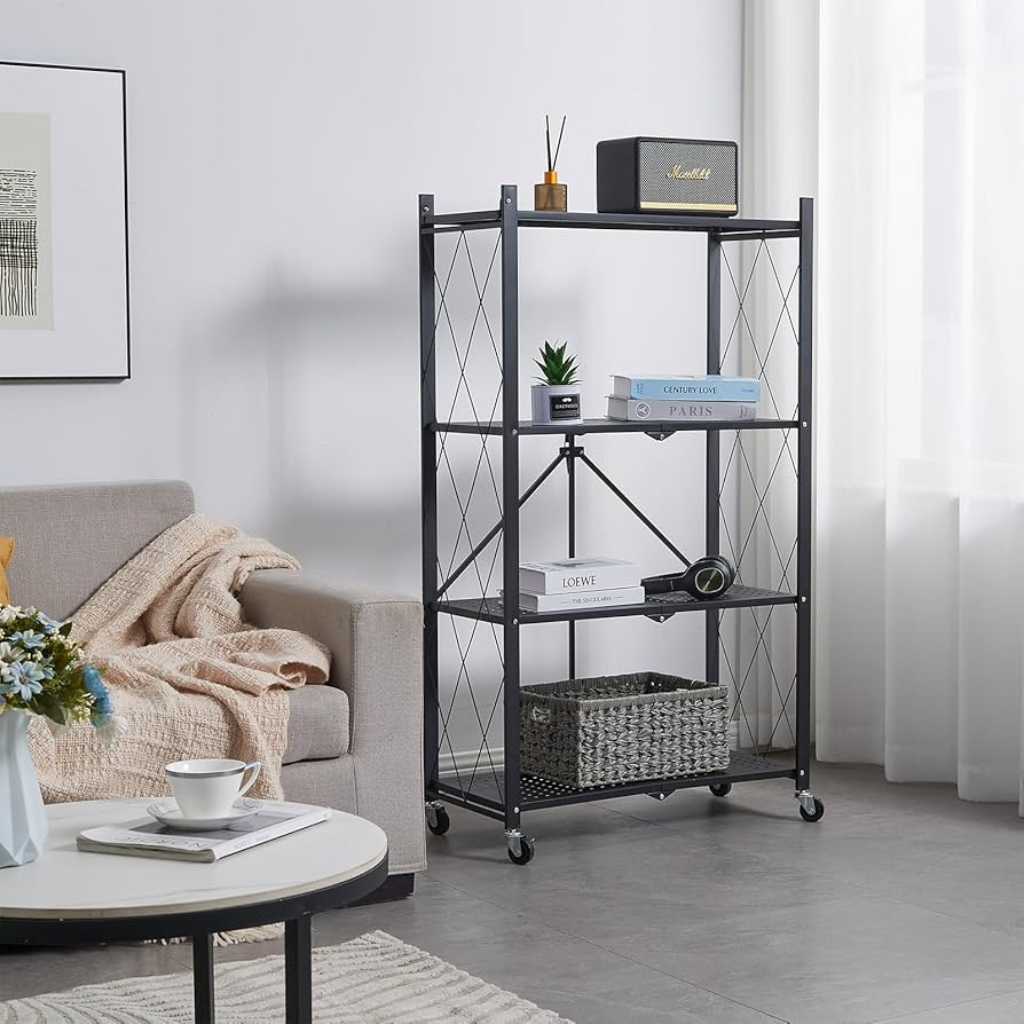 Diseño plegable y que ahorra espacio: el estante de almacenamiento de 4 niveles se puede plegar cuando no esté en uso.
